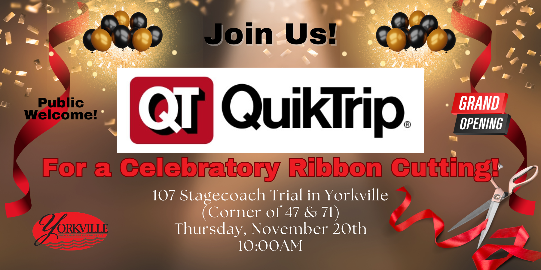 We’re excited to invite you to our celebratory Ribbon Cutting in honor of the Grand Opening of QuikTrip